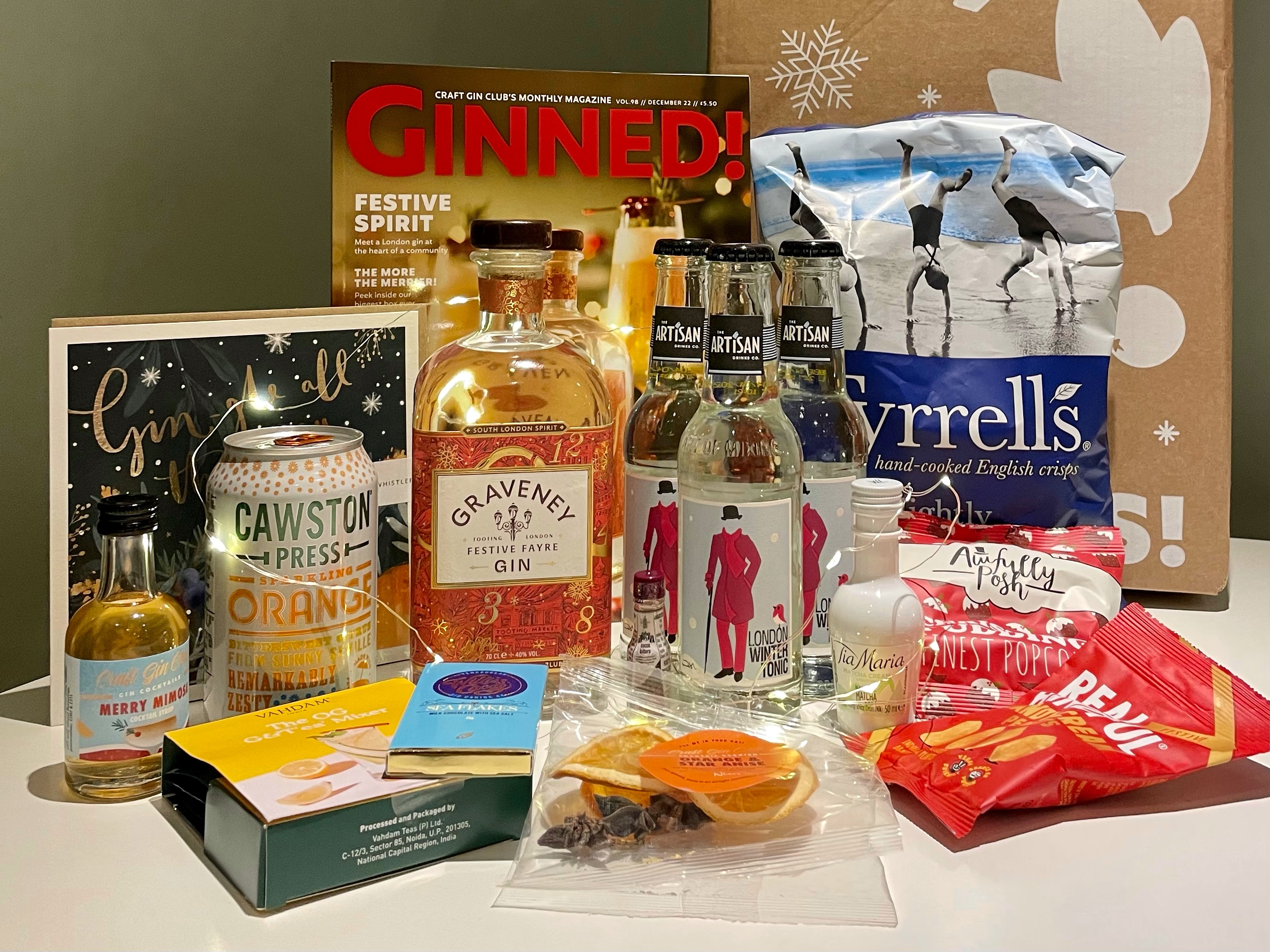 Alongside this month’s Craft Gin Club box, featuring Graveney Festive Fayre Gin, I’ve also been fortunate to receive a wealth of gifts from some of my favourite distilleries including two fabulous gin pins and a miniature of Orkney Gin Company‘s amazing Aatta, plus a new Aquavit from Audemus, a bundle of miniatures including their brand new Apricot Eau-de-Vie from Greensand Ridge, Thunderflower’s (potential) new spirit Winter Orchard Apple Spiced Gin and – just in time for Dry January – High Point’s non-alcoholic Ruby Aperitif. I’m also delighted to have, with the help of Nature Reclaimed, upcycled two of my favourite gin bottles – Lind & Lime and my Gin A Ding Ding bottle from 58 and Co – into two stunning lamps.