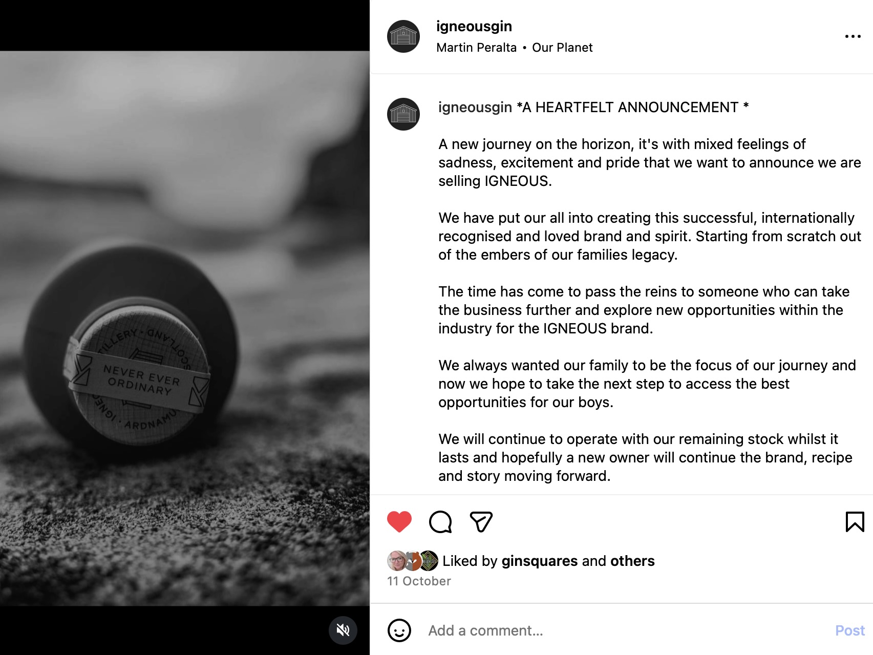 Finally, and rather sadly, Igneous Gin have announced on Instagram that they are selling up. They are hoping to find a new owner to take the business further and explore opportunities for the brand so, if you think that could be you, check out the full details here.